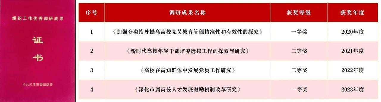 近5年來(lái)我校先后4項(xiàng)組織工作調(diào)研成果獲市級(jí)表彰