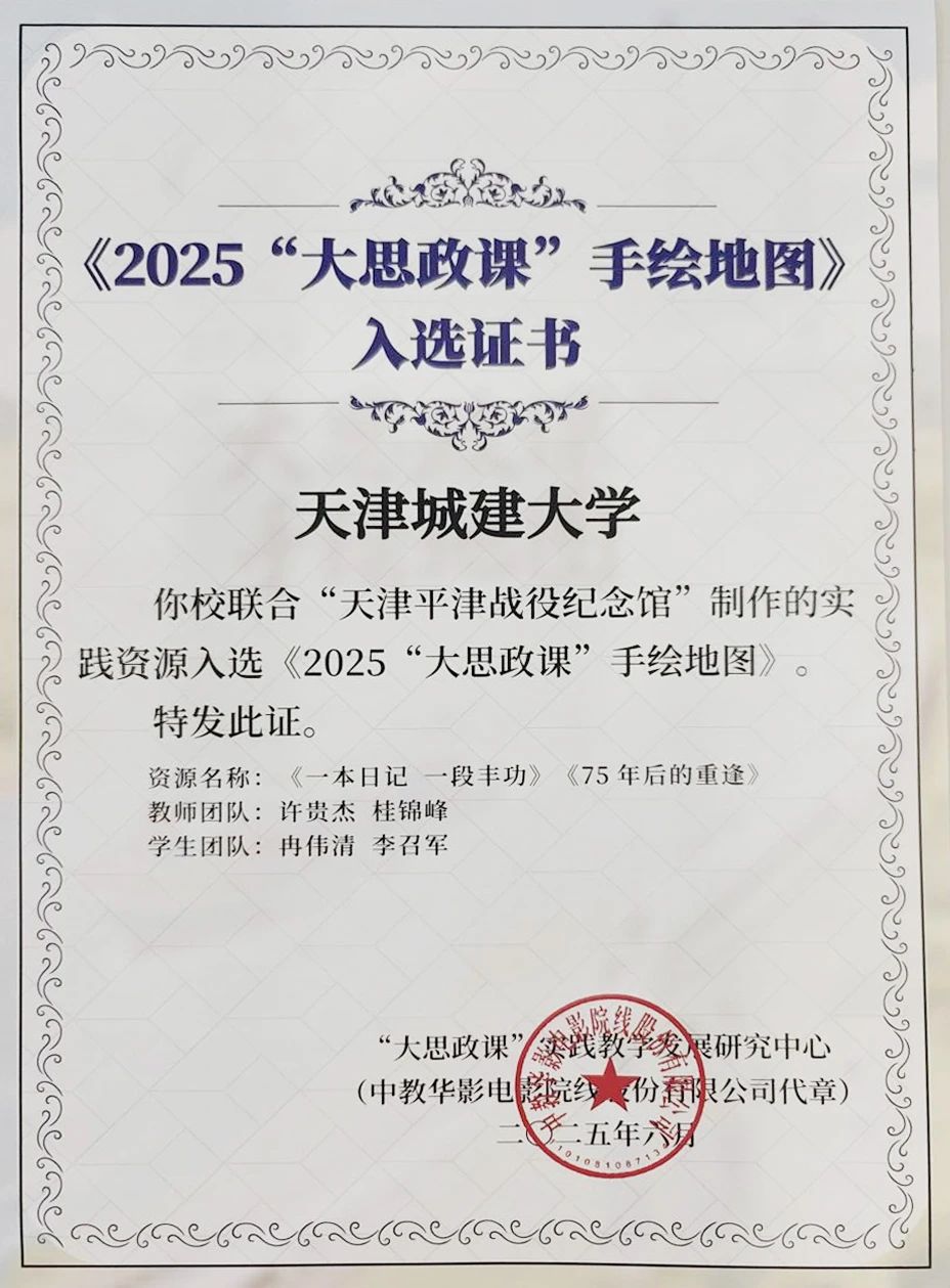 由馬克思主義學院許貴杰、桂錦峰兩位老師指導,學生冉偉清(2024級設計類11班)、李召軍(2021級工程管理1班)創作的實踐教學資源《75年后的重逢》與《一本日記 一段豐功》,是我校與天津市平津戰役紀念館緊密合作,共同開發的“行走的思政課”精品資源。作品根植于天津這座英雄城市的豐厚歷史土壤,深刻挖掘了城市記憶背后的人民力量與和平解放對人民安居樂業的奠基意義。