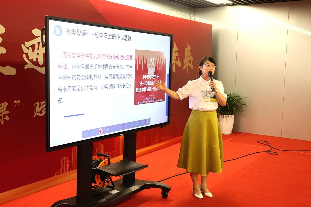 天津科技大學思政課教師李瑤則從實踐維度出發(fā),帶來一堂題為《在津沽藍圖上錨定價值坐標—做新時代意識形態(tài)陣地的青春衛(wèi)士》的精彩分享。她從“總體國家安全觀”切入,引導同學們思考如何在紛繁的信息時代校準人生的“價值羅盤”?她表示,對抗個人主義、享樂主義等錯誤思潮的“密鑰”,恰恰在于真正讀懂個人價值的實現(xiàn),就蘊藏在為這座城市添磚加瓦的奮斗之中。
