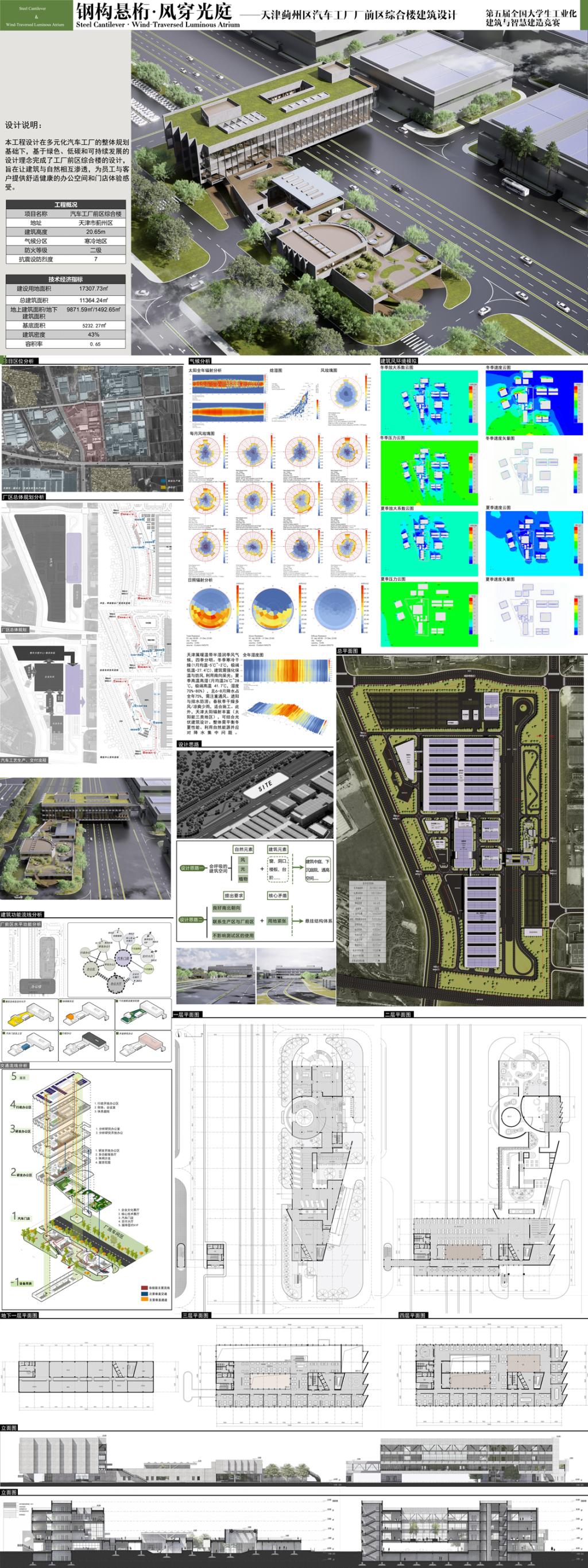 隨著產業結構的優化調整,新的產業形態和運營模式對廠前區綜合樓功能提出新要求,而“雙碳”目標的深入推進,為既有工業建筑的提質增效提供契機。本設計以現代工業建筑理論為指導,以生產工藝為立足點,綜合考慮風環境、光環境與聲環境進行廠區規劃。借鑒橋梁設計經驗,通過懸掛結構很好解決了場地限制、滿足了社會參觀需求等要求,形成了跨越測試場地的大跨度辦公研發空間,使之能夠適應新時代的產業需求。