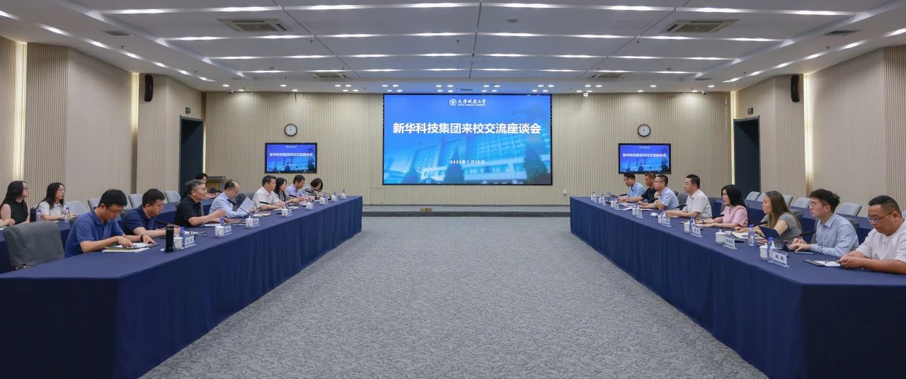 近日,新華科技集團董事長梅長春、總裁張春靜一行7人來校座談交流。我校校長王中良、副校長閻兵親切會見來賓并參加交流座談會。