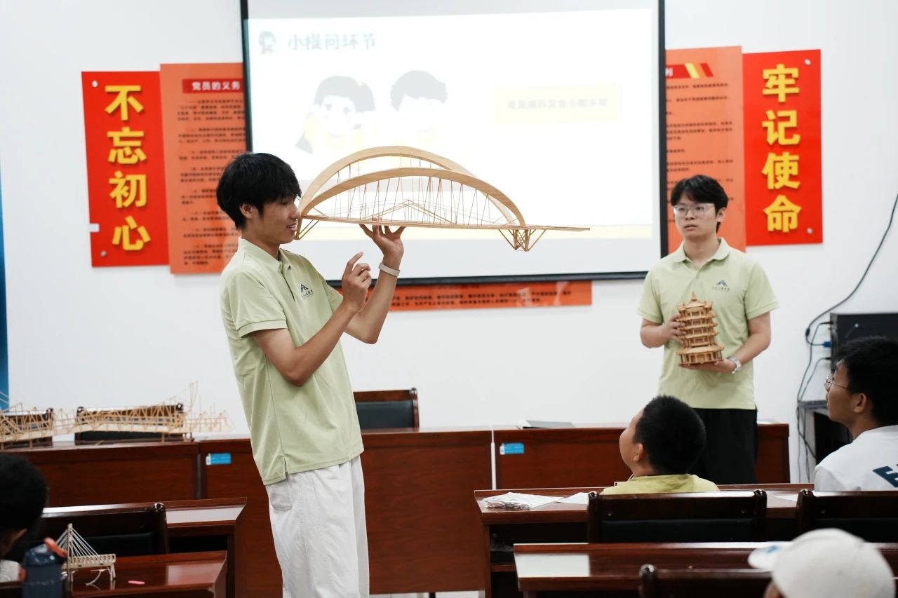 活動尾聲,孩子們驕傲地舉起親手完成的斜拉橋模型,合影定格下這珍貴的瞬間。那些用木片精心構(gòu)筑的索塔、看似搖晃卻緊密協(xié)作的棉繩,不僅模擬了跨越河岸的物理橋梁,更在孩子們心中架起了一座堅實(shí)的認(rèn)知之橋——一座連接當(dāng)下實(shí)踐與未來視野、溝通家鄉(xiāng)情懷與廣闊世界的橋梁。今日聆聽外交故事的小小聽眾,或許明日就是馳騁國際舞臺的外交官;此刻專注拉緊繩索的“小小工程師”,未來也許能設(shè)計出聯(lián)通世界的超級工程。這顆在童心中播下的開放包容的種子,終將在世界舞臺上綻放耀眼的津門華彩。正如“智建津彩”實(shí)踐團(tuán)的宣言所期許的那樣,“讓世界從天津讀懂中國,讓中國從童年看見世界。”