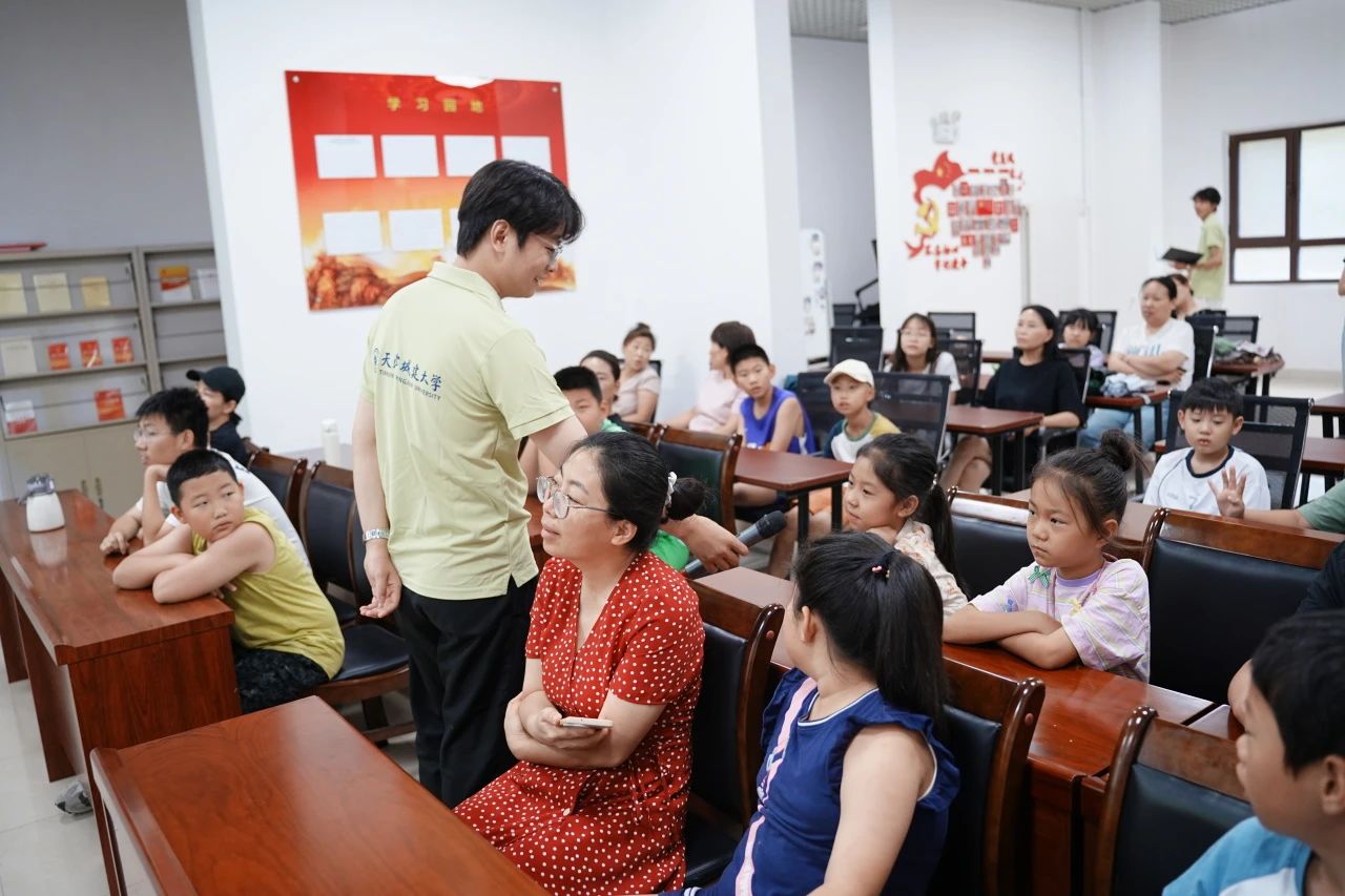 “你們知道嗎?五大道不僅是旅游名片,更將成為世界的‘文明客廳’!”實(shí)踐團(tuán)成員孫冰熠指著投影上的小洋樓群,用童趣地圖開啟知識之旅?!翱催@座英式建筑,像不像穿著西裝的紳士?今年,許多國家的‘大朋友’就要來到天津,在這樣優(yōu)雅的‘會客廳’里,共商共建美好世界!”。天津之眼是云端架設(shè)的“觀察之窗”。當(dāng)摩天輪影像出現(xiàn)在屏幕上,孩子們齊聲歡呼?!澳μ燧喩阶罡咛幠芸炊噙h(yuǎn)?上合組織就是幫中國‘站得更高’的朋友圈!”志愿者借助望遠(yuǎn)鏡道具,生動詮釋多邊合作的廣闊視野,孩子們爭相描述起“從天津之眼眺望哈薩克斯坦草原”的奇妙想象。實(shí)踐團(tuán)帶隊教師楊紅則從城市規(guī)劃的專業(yè)視角切入,引導(dǎo)孩子們更直觀地思考天津承辦上合會議的獨(dú)特城市稟賦,在童心深處悄然埋下開放與自信的種子。