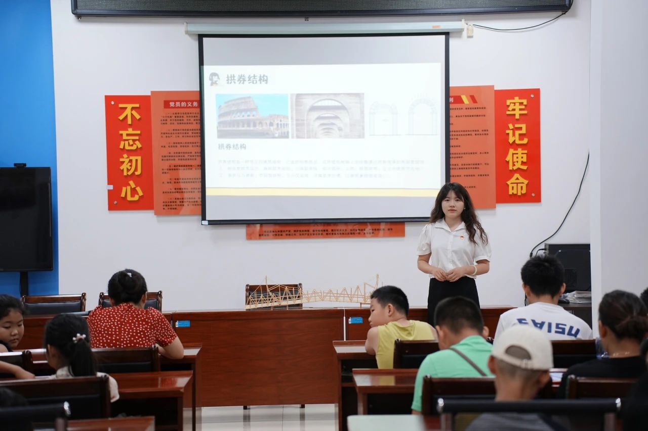 為了將“國際合作”的抽象理念變得通俗易懂,實(shí)踐團(tuán)巧妙地將其具象化為斜拉橋的力學(xué)原理?!盀槭裁催x擇斜拉橋作為模型?”面對孩子們的疑問,實(shí)踐團(tuán)成員指著動畫分解圖循循善誘:“大家看,這座斜拉橋高聳堅固的索塔,如同穩(wěn)固的根基,巍然屹立。無數(shù)鋼索協(xié)同發(fā)力,共同托起橋面——這不正像上合組織國家手拉手緊密協(xié)作嗎?俄羅斯豐富的能源、中國先進(jìn)的技術(shù)、中亞關(guān)鍵的通道……就像每一根不可或缺的剛索,共同支撐起發(fā)展的橋梁!”