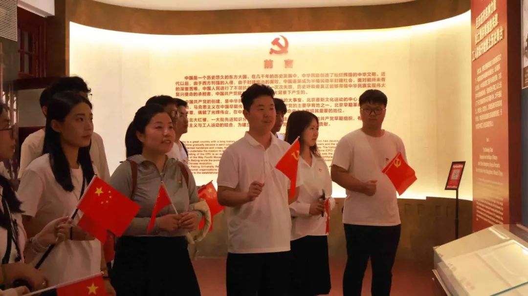 走進北大紅樓,古樸的建筑無聲訴說著百年前的風云激蕩。學生黨支部書記周涵和輔導員楊宇為同學們詳細介紹了北大紅樓作為新文化運動的重要營壘、五四運動的策源地、中國共產黨早期重要活動地的歷史背景。講述了從李大釗在此傳播馬克思主義,到毛澤東在這里工作學習等一系列歷史故事,讓大家仿佛穿越時空,親眼見證了那段波瀾壯闊的歲月。