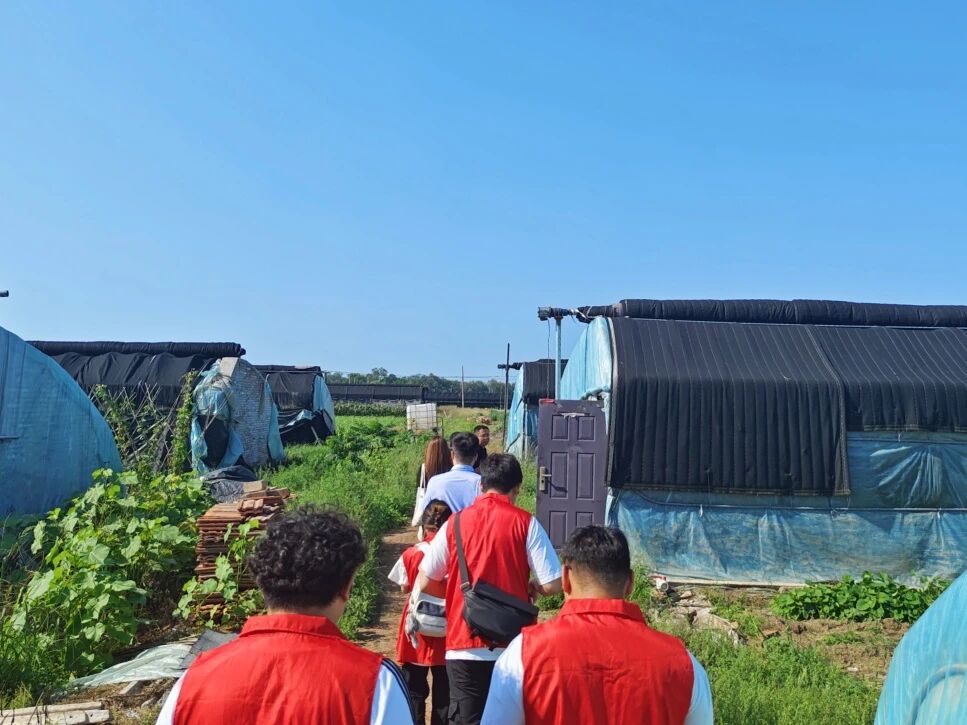 本次實(shí)踐,王老師介紹了生物質(zhì)供暖技術(shù):燃料源于秋收后的秸稈,燃燒熱量通過(guò)地下管網(wǎng)輸送至各大棚土壤,保障適宜溫度。棚頂銅色熱管可吸收土壤多余水汽,經(jīng)頂部蒸發(fā)后,凝結(jié)水滴用于灌溉。正午時(shí),棚頂噴頭噴出細(xì)密水珠,使棚內(nèi)溫度穩(wěn)定在26℃左右,顯著低于室外。堆肥區(qū)的“泡泡機(jī)”能有效處理農(nóng)家肥,減少異味。我們有幸進(jìn)入其中一個(gè)大棚近距離感受有機(jī)蔬菜的魅力。這場(chǎng)實(shí)踐教會(huì)我的,不是某個(gè)公式或設(shè)備,而是重新認(rèn)識(shí)了“能源”和“土地”的關(guān)系。以往認(rèn)為能源技術(shù)高深,如今發(fā)現(xiàn)它存在于需保溫的土壤、待生長(zhǎng)的果蔬及農(nóng)民的期盼中。作為能源學(xué)院的學(xué)生,我深刻體會(huì)到:我們的專業(yè)不該只在實(shí)驗(yàn)室里“紙上談兵”,而是要走到土地里,去聽(tīng)土地需要什么,去看農(nóng)民盼望什么——因?yàn)樽詈玫哪茉醇夹g(shù),從來(lái)都不是實(shí)驗(yàn)室里的“杰作”,而是土地和人共同寫(xiě)就的“故事”。
