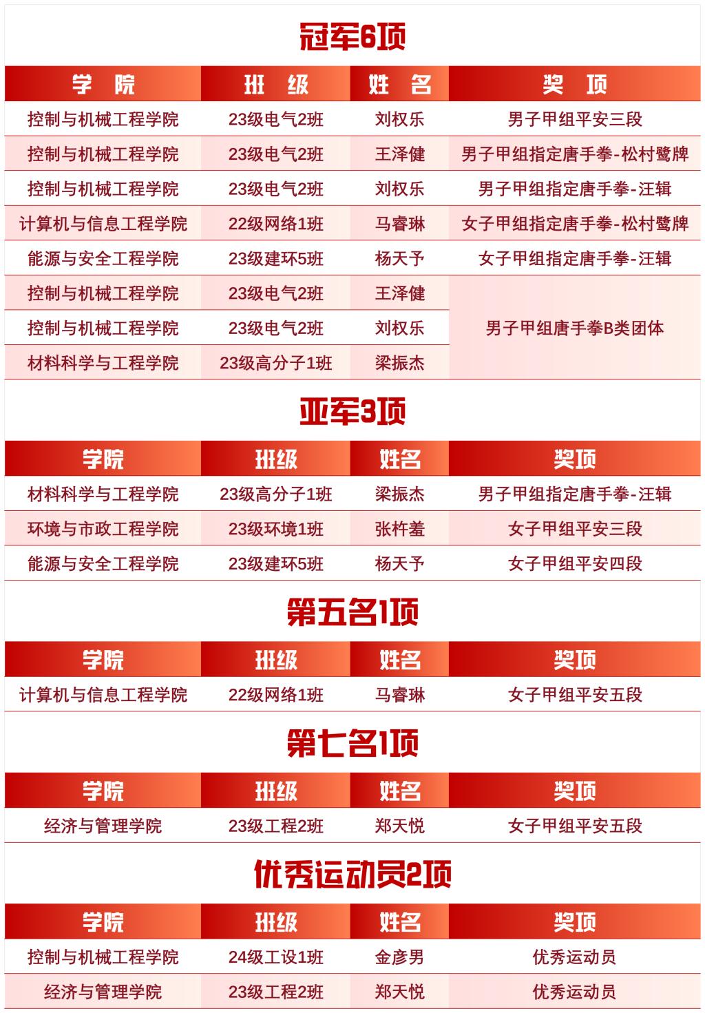 本次比賽,我校共選派8名運動員參賽,在體育部劉麗老師和李正老師的悉心指導(dǎo)下,同學(xué)們不僅在招式技法上得到精進(jìn),更在尚武精神、堅韌品格的塑造上實現(xiàn)了提升。賽場上,他們完美詮釋了“重德重能 善學(xué)善建”的校訓(xùn)精神,彰顯了我校推進(jìn)新時代民族傳統(tǒng)體育教育、深化體教融合的重要成果,展現(xiàn)了天津城建大學(xué)學(xué)子剛健有為、昂揚向上的青春風(fēng)采。