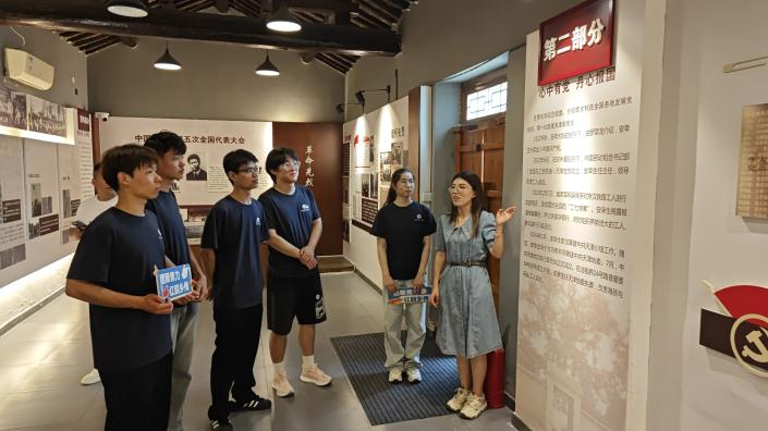 在北辰革命斗爭史館內,實踐團成員深切體會到黨在天津地區,特別是北辰一帶領導人民進行艱苦卓絕斗爭的光輝歷程。紅色教育中心運營負責人高斌向實踐團成員們詳細解讀了黨在北辰地區的光輝歷程。隨后,圍繞“新時代如何有力弘揚紅色精神”以及創新活動形式這一話題,雙方展開深入交流,實踐團成員們積極建言獻策,提出借助數學建模優化紅色景點參觀路線、依托紅色歷程脈絡設計紅色劇本殺等,助力紅色文化在時代“破圈出彩”,在新時代煥發出蓬勃生機,助力紅色基因“火熱傳承”。