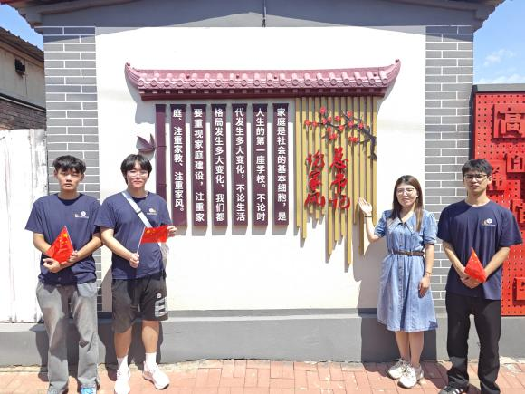 實踐團最后來到紅色文化胡同,一幅幅構思巧妙、生動形象的紅色文化畫作躍然墻上,濃厚的紅色氣息撲面而來,成員們紛紛化身為“紅色講解員”互相宣講紅色知識。此外,成員們還通過立體農民畫、復古場景再現、鄉村印象實物墻感受到中河頭特有的村風、家風、民風,以及傳統美德與家族文化代代相傳的獨特魅力。