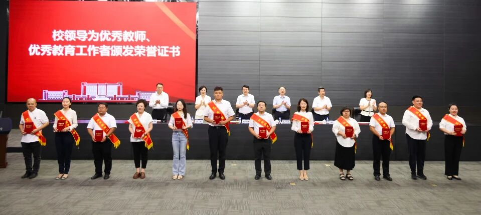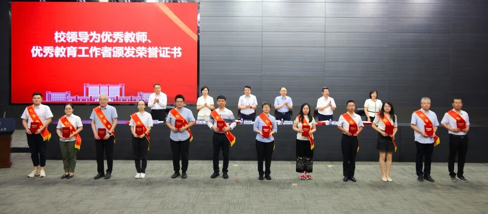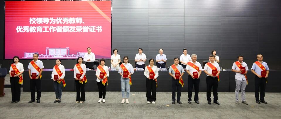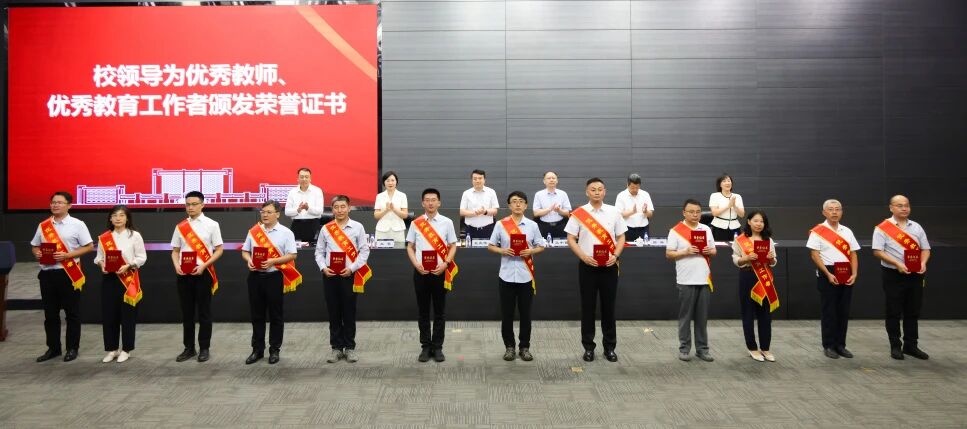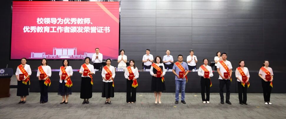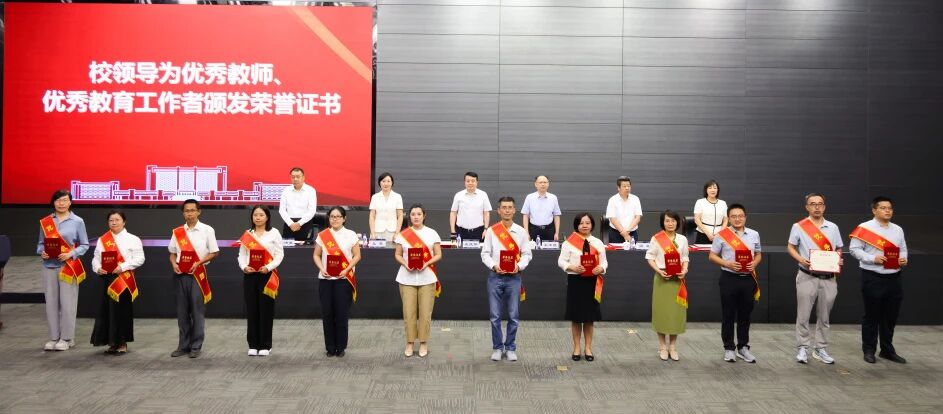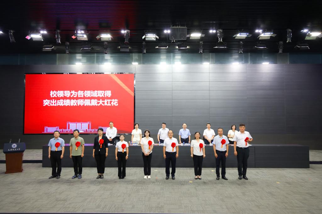 致敬師者擔當,禮贊育人初心。校領導為榮獲校級優秀教師和優秀教育工作者稱號的80名教師頒發榮譽證書,為國家級人才計劃青年項目入選者程星磊、天津市三八紅旗手周曉潔等在思想政治、教學科研、指導學生競賽、社會實踐等各項工作中取得突出成績的教師佩戴大紅花,充分肯定他們敬業奉獻、持之以恒的堅持與付出。