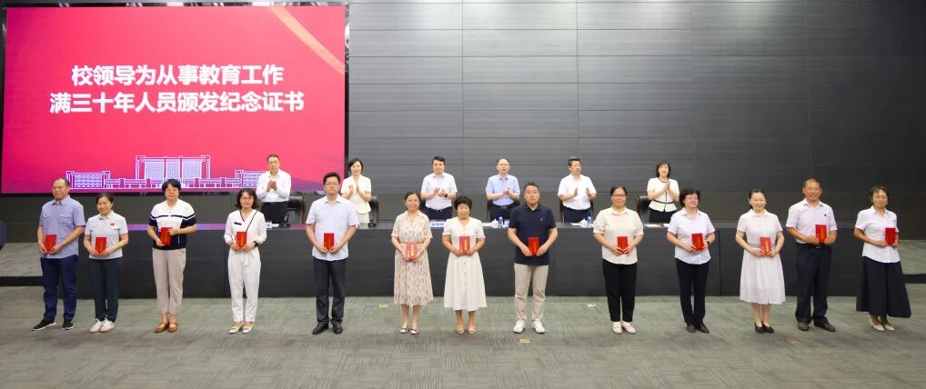 校領導為從教滿三十年教師頒發紀念證書,青年教師向老教師致敬。三十年堅守初心,三十年立德樹人,老師們將青春年華奉獻給三尺講臺,用愛與責任為教育寫下最質樸、最動人的注腳。青年教師接過立德樹人的接力棒,讓教育之光在天城大這方熱土上接力耕耘,薪火相傳。
