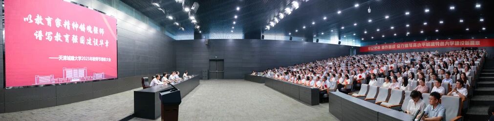 校長王中良宣讀了《2024-2025學年度天津城建大學優秀教師、優秀教育工作者表彰決定》《2024-2025學年度取得突出成績教師代表名單》,以及《2025年學校獲得從事教育工作滿三十年紀念證書人員名單》,代表學校向所有獲得表彰的教職員工表示熱烈祝賀,并向長期以來扎根教學、管理服務一線,默默奉獻、辛勤耕耘的全體教育工作者致以崇高敬意和衷心感謝,勉勵大家堅守立德樹人初心,擔當為黨育人、為國育才的光榮使命,以赤誠之心、奉獻之心、仁愛之心投身教育事業,共同為推動學校事業高質量發展、培養德智體美勞全面發展的社會主義建設者和接班人作出新的更大貢獻。
