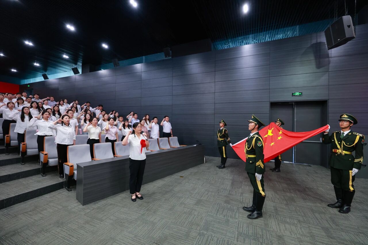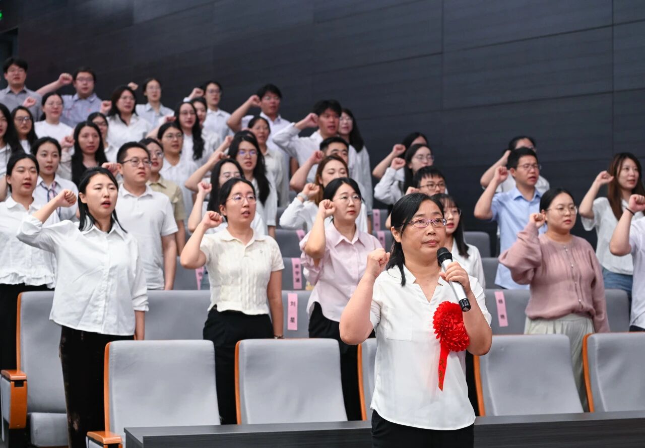 全體新入職教師面向國旗莊嚴宣誓,鏗鏘有力的誓言是他們積極投身教育強國實踐的鄭重承諾,彰顯了對教育事業的無限熱愛與崇高敬意。