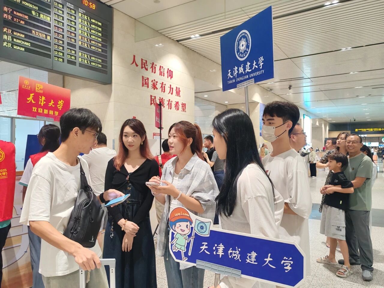 學(xué)校團(tuán)委組織志愿者奔赴天津南站、西站、東站、機(jī)場(chǎng)及高新區(qū)地鐵站,并在校內(nèi)設(shè)立志愿服務(wù)點(diǎn),全面開展迎新保障工作。志愿者們以熱情指引、貼心服務(wù)和燦爛笑容,為2025級(jí)新生打通從“站臺(tái)到校園”的最后一公里,用實(shí)際行動(dòng)傳遞著學(xué)校的溫度與關(guān)懷。青春接力,溫暖相伴,我們與你一路同行!