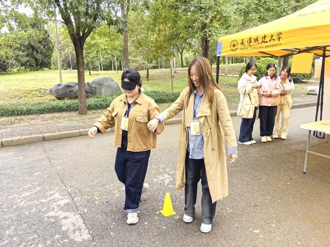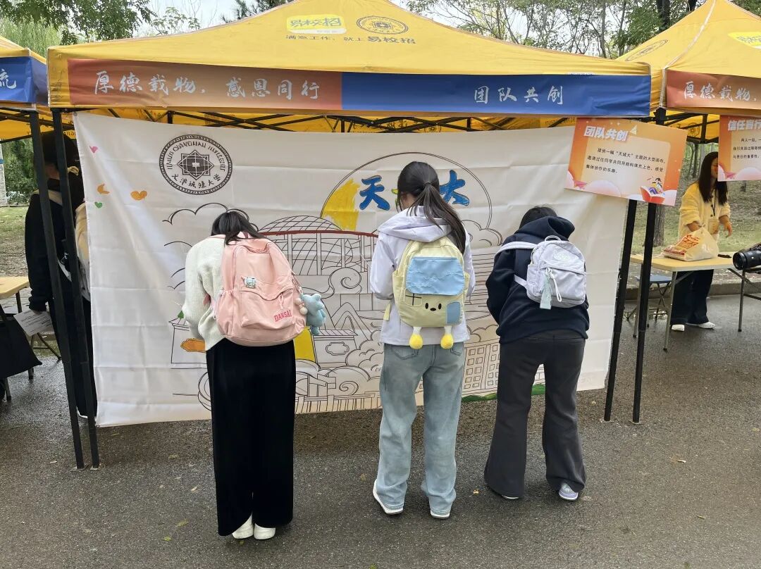 在“厚德載物,感恩同行”的“德心”區域,青年學子紛紛寫下對家人、朋友、老師的"感恩明信片",體驗“信任盲行”游戲,"團隊共創"天城大主題畫布填色,在互動中感受溫暖與善意,增強集體榮譽感和團隊凝聚力。