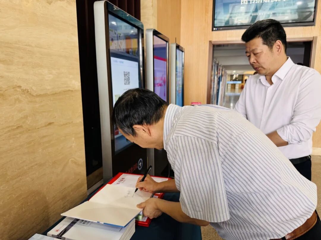 捐贈儀式現場,楊洪興教授為圖書親筆簽名,為圖書館簽寫捐贈寄語——“祝愿圖書館每天燈火通明,照亮學子前程”。楊教授還結合自身學術經歷分享了對知識傳播與學術交流的見解。圖書館館長張文強代表學校接受捐贈。圖書館直屬黨支部書記劉志軍與楊洪興教授共同為捐贈圖書上架,讓這批珍貴專著在圖書館“安家落戶”。捐贈儀式后,圖書館副館長柳英重點介紹了圖書館整體資源布局與服務特色,并引導大家一同參觀了第三書庫、捐贈圖書陳展紀念室、半閑書屋。