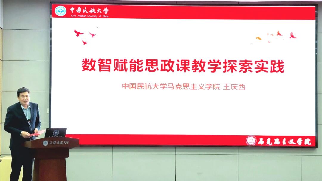 中國民航大學馬克思主義學院院長王慶西教授作主旨報告。他圍繞“數智賦能思政課教學探索實踐”這一主題,從政策引領、AI賦能課程建設、未來規劃三個方面,深度解析了思政課在生成式AI時代的發展契機,闡述了數智賦能思政課教學的機遇與挑戰,并分享了中國民航大學馬克思主義學院在AI賦能思政課建設以及智慧課程建設中的前沿成果與實踐經驗。