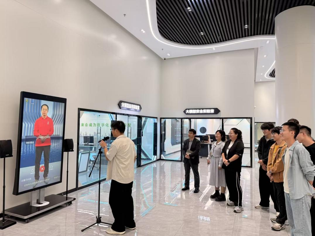 參觀過程中,同學(xué)們駐足在360集團創(chuàng)始人周鴻祎先生的數(shù)字人屏幕前,體驗與數(shù)字人互動,向數(shù)字人提出了不同編程語言在企業(yè)實踐中的應(yīng)用場景,以及計算機類專業(yè)的未來求職方向等問題,都得到了有針對性的解答。