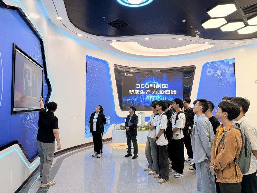 在企業(yè)講解員的帶領(lǐng)下,師生們先后參觀了360集團天津總部的網(wǎng)絡(luò)安全運營中心(SOC)、技術(shù)研發(fā)實驗室及企業(yè)文化展示區(qū)。在網(wǎng)絡(luò)安全運營中心,工作人員演示了實時大數(shù)據(jù)監(jiān)測分析平臺如何對網(wǎng)絡(luò)攻擊、數(shù)據(jù)泄露等安全風險進行精準識別與快速響應(yīng),生動展現(xiàn)了 “數(shù)字安全大腦” 在保障關(guān)鍵信息基礎(chǔ)設(shè)施安全中的核心作用。同學(xué)們圍繞 “網(wǎng)絡(luò)攻擊防御技術(shù)”“數(shù)據(jù)隱私保護措施” 等問題與技術(shù)人員展開交流,現(xiàn)場學(xué)習(xí)氛圍濃厚。在技術(shù)研發(fā)實驗室,師生們近距離接觸了 360集團在人工智能算法優(yōu)化、物聯(lián)網(wǎng)安全檢測等領(lǐng)域的最新研發(fā)項目。同學(xué)們紛紛表示,通過觀摩企業(yè)的研發(fā)環(huán)境與工作模式,深刻感受到理論知識與實踐應(yīng)用的緊密聯(lián)系,拓寬了專業(yè)視野。作為計算機專業(yè)背景的學(xué)生,大家備受鼓舞,更加明確了未來的學(xué)習(xí)方向與職業(yè)規(guī)劃。
