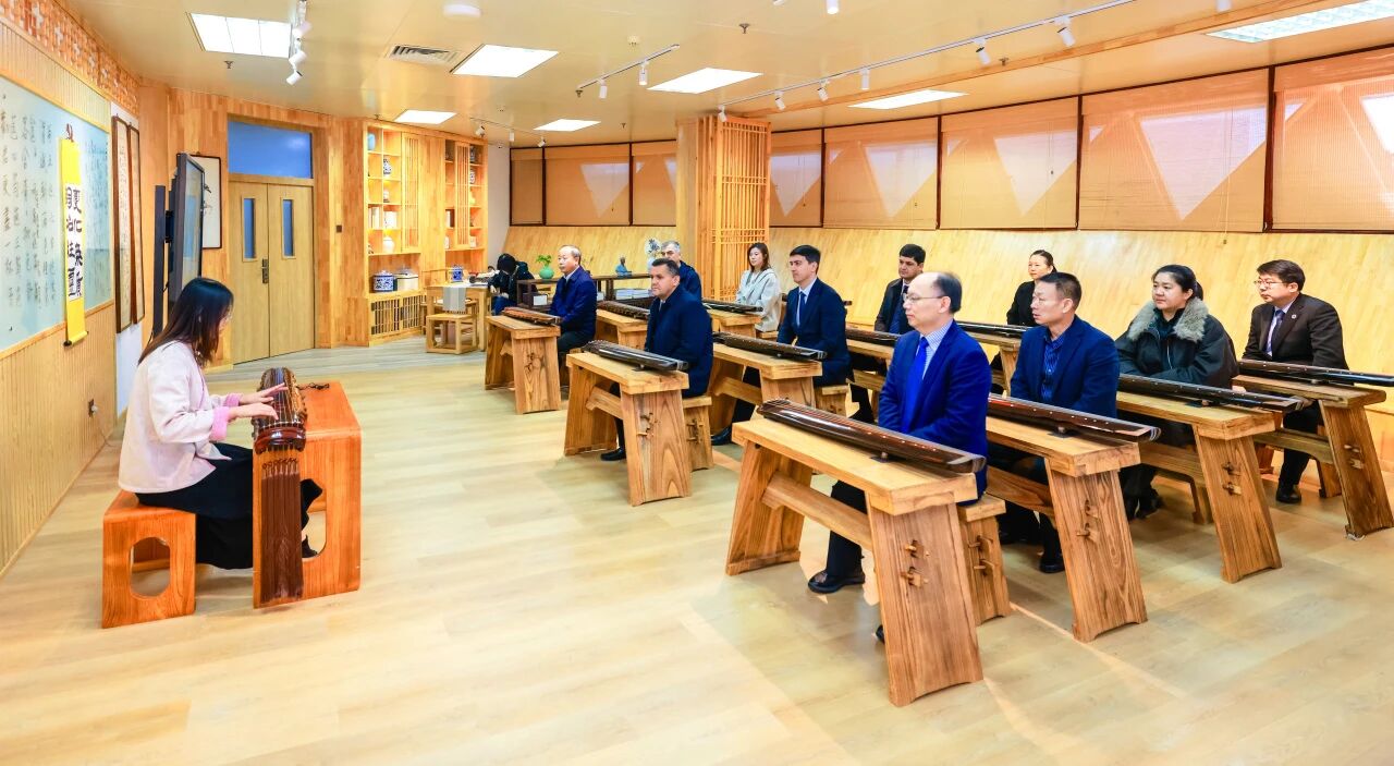 會(huì)后,代表團(tuán)一行參加塔吉克斯坦來(lái)華留學(xué)生見(jiàn)面會(huì),同塔方學(xué)子親切交談,勉勵(lì)學(xué)生們珍惜在華留學(xué)的寶貴時(shí)光,精進(jìn)專(zhuān)業(yè)技能、學(xué)有所成。代表團(tuán)參觀了我校中華優(yōu)秀傳統(tǒng)文化中心暨古琴弦歌基地,深入了解我校辦學(xué)條件與特色優(yōu)勢(shì),沉浸式感受古琴弦歌等中華優(yōu)秀傳統(tǒng)文化的獨(dú)特魅力,對(duì)我校國(guó)際化辦學(xué)成果及深厚的文化育人氛圍給予高度贊賞。