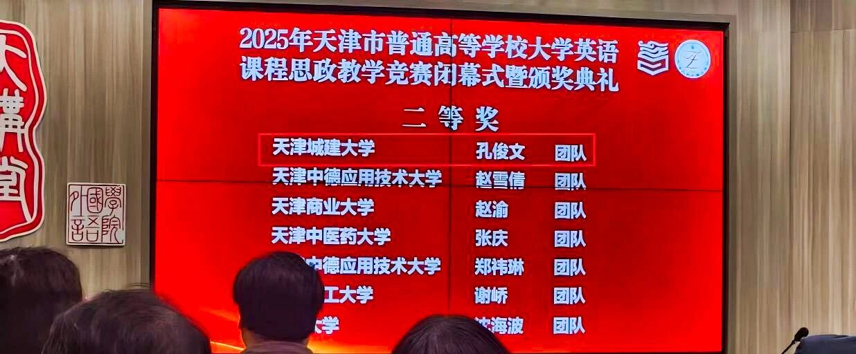 近日,天津市普通高等學(xué)校大學(xué)英語課程思政教學(xué)競賽決賽在天津大學(xué)圓滿落下帷幕。我校外國語學(xué)院孔俊文老師教學(xué)團隊表現(xiàn)出色,榮獲二等獎。