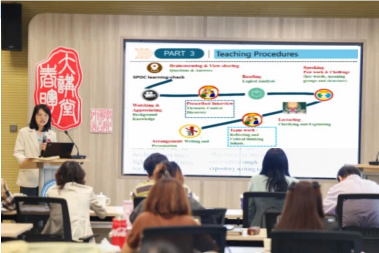 決賽現(xiàn)場,來自天津市多所高校的13組精英團隊在現(xiàn)場交流活動中展現(xiàn)了卓越的教學(xué)風(fēng)采和深厚的思政底蘊。在現(xiàn)場抽題環(huán)節(jié),我??卓∥睦蠋熁凇癟ransportation”教學(xué)單元,在90分鐘的備賽過程中,完整設(shè)計并呈現(xiàn)了其基于社會主義核心價值觀教育的融入式課程思政教學(xué)內(nèi)容,其對課程思政元素的深入挖掘及匠心獨運的課堂構(gòu)思,展示了扎實的教學(xué)基本功和內(nèi)涵豐富的課程思政教學(xué)設(shè)計闡釋。在現(xiàn)場問答環(huán)節(jié),評委就教學(xué)內(nèi)容的理解深度、教學(xué)設(shè)計的創(chuàng)新性、思政元素與英語課程的融合等方面現(xiàn)場提問,參賽教師從容應(yīng)對、對答切題,以靈活的應(yīng)變能力和富有針對性的回答,向評委及現(xiàn)場觀眾生動呈現(xiàn)了我校大學(xué)英語課程思政教學(xué)的獨特魅力。