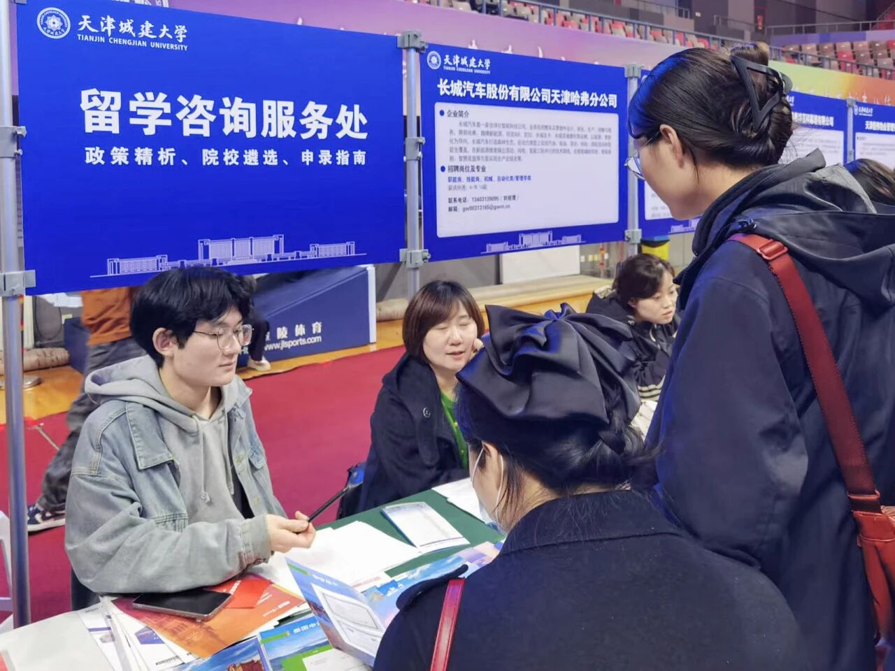 據悉,此次招聘會共邀請用人單位110余家,其中,國有企業占比50.23%,民營企業占比47.74%,三資企業占比2.03%。涵蓋土木、建筑、制造、化工、機械、材料、新能源、工程管理、計算機等多個行業,累計提供崗位3894個,招聘需求達8972人。招聘會設有天津市僑商會專區、天津市建設監理協會專區,西青區人社局專區、和平區人社局專區,現場還專門設置了暖心服務專區,匯聚了天津市就業政策咨詢、大學生征兵工作服務、“筑心”生涯工作室指導、出國留學咨詢等多元服務,為畢業生提供“一站式”的精準就業支持。招聘會現場氣氛熱烈,用人單位與畢業生積極交流,學生投遞簡歷踴躍,300余名畢業生初步與單位達成簽約意向。