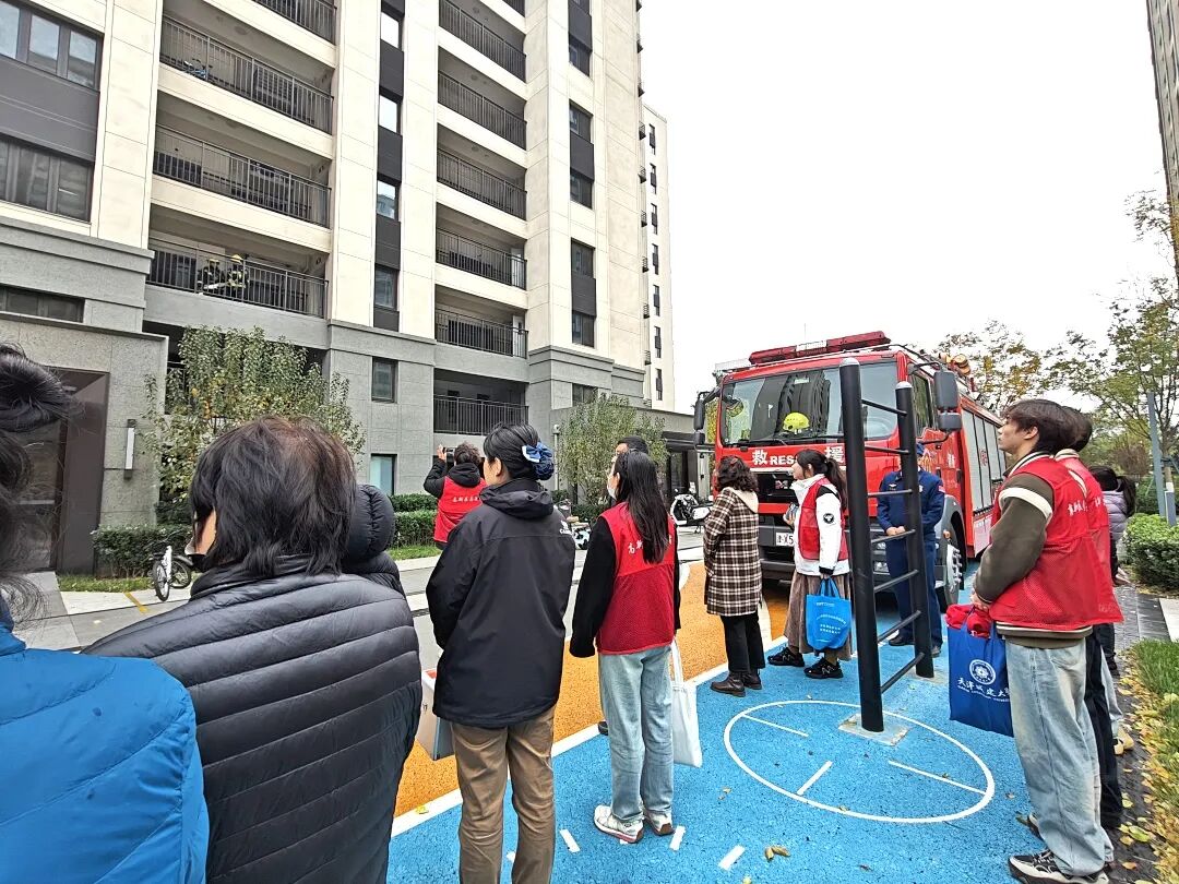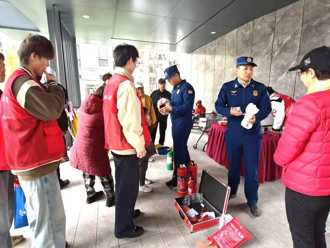 師生代表還與海泰大道消防站一起走進(jìn)社區(qū),將消防安全知識(shí)送到居民家門口。一堂生動(dòng)實(shí)用的消防安全課在社區(qū)廣場(chǎng)拉開,居民們圍在身穿制服的消防員和師生身旁,認(rèn)真學(xué)習(xí)日常生活中必備的消防知識(shí)。在滅火器體驗(yàn)環(huán)節(jié),消防隊(duì)員詳細(xì)講解了干粉、水基滅火器的使用方法,并指導(dǎo)居民親手操作。“原來使用滅火器還有這么多講究”,剛體驗(yàn)完的王大媽感慨道。“參與這樣的活動(dòng),讓我真切感受到了宣傳消防知識(shí)的重要性和意義所在”,控制與機(jī)械工程學(xué)院大三學(xué)生曹嘉興、蘇瑞豐表示,“回學(xué)校后要繼續(xù)向同學(xué)們宣傳消防安全知識(shí),共同防范安全風(fēng)險(xiǎn)。”消防站彭顯超站長(zhǎng)認(rèn)為,高校師生參與消防宣傳,為消防安全進(jìn)社區(qū)工作注入了新的活力,帶來了新思路、新方法,也為“消防-高校-社區(qū)”一體化共建,進(jìn)一步筑牢安全防線奠定了良好的基礎(chǔ)。