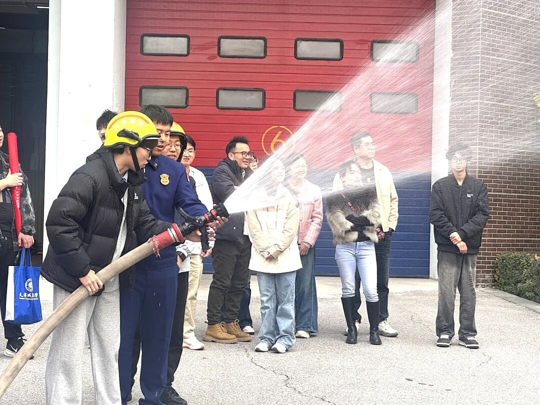 在海泰大道消防站參觀學(xué)習(xí)的過程中,消防站彭顯超站長(zhǎng)為我校師生詳細(xì)介紹了消防救援隊(duì)伍的歷史沿革、入隊(duì)誓詞以及“對(duì)黨忠誠(chéng)、紀(jì)律嚴(yán)明、赴湯蹈火、竭誠(chéng)為民”的建隊(duì)方針。期間,彭顯超還詳細(xì)講解了不同種類消防車和救援設(shè)備:如滅火類消防車代表車型水罐消防車;舉高類消防車代表車型云梯消防車、登高平臺(tái)消防車等。在消防員的指導(dǎo)下,師生們還分組體驗(yàn)了滅火器操作、水帶連接等項(xiàng)目。初次接觸裝備,同學(xué)們動(dòng)作雖生疏但態(tài)度認(rèn)真,通過一系列操作,大家不僅掌握了基本消防技能,更切身感受到消防員平日訓(xùn)練的艱辛與團(tuán)隊(duì)協(xié)作的重要。