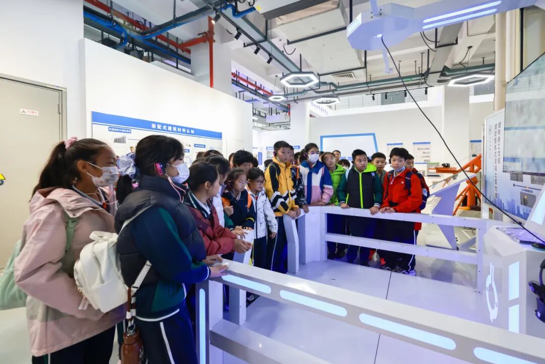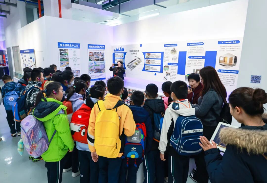 剛踏入科普基地,孩子們的目光便被錯落擺放的建筑模型和動態(tài)演示的互動裝置深深吸引。在講解員的引導(dǎo)下,大家率先走進裝配式建筑展廳,開啟對建筑"工業(yè)化密碼"的探索之旅。