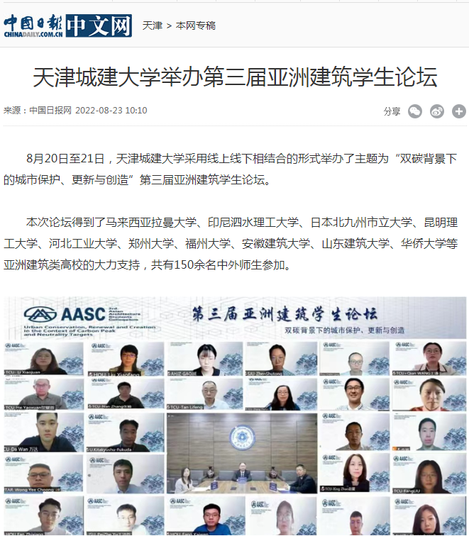 8月20日至21日,主題為“雙碳背景下的城市保護、更新與創造”第三屆亞洲建筑學生論壇在我校成功舉辦。