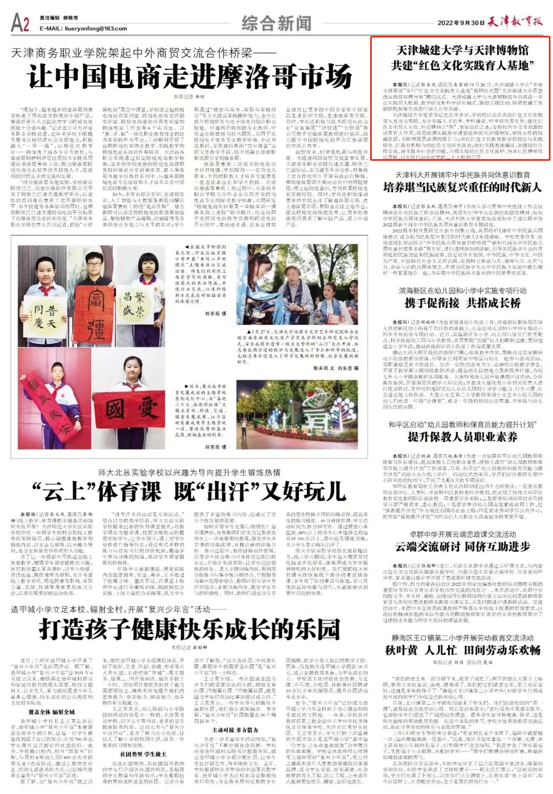 9月30日,《天津教育報》以“天津城建大學(xué)與天津博物館共建‘紅色文化實(shí)踐育人基地’”為題對我曉相關(guān)工作進(jìn)行報道。原文如下: