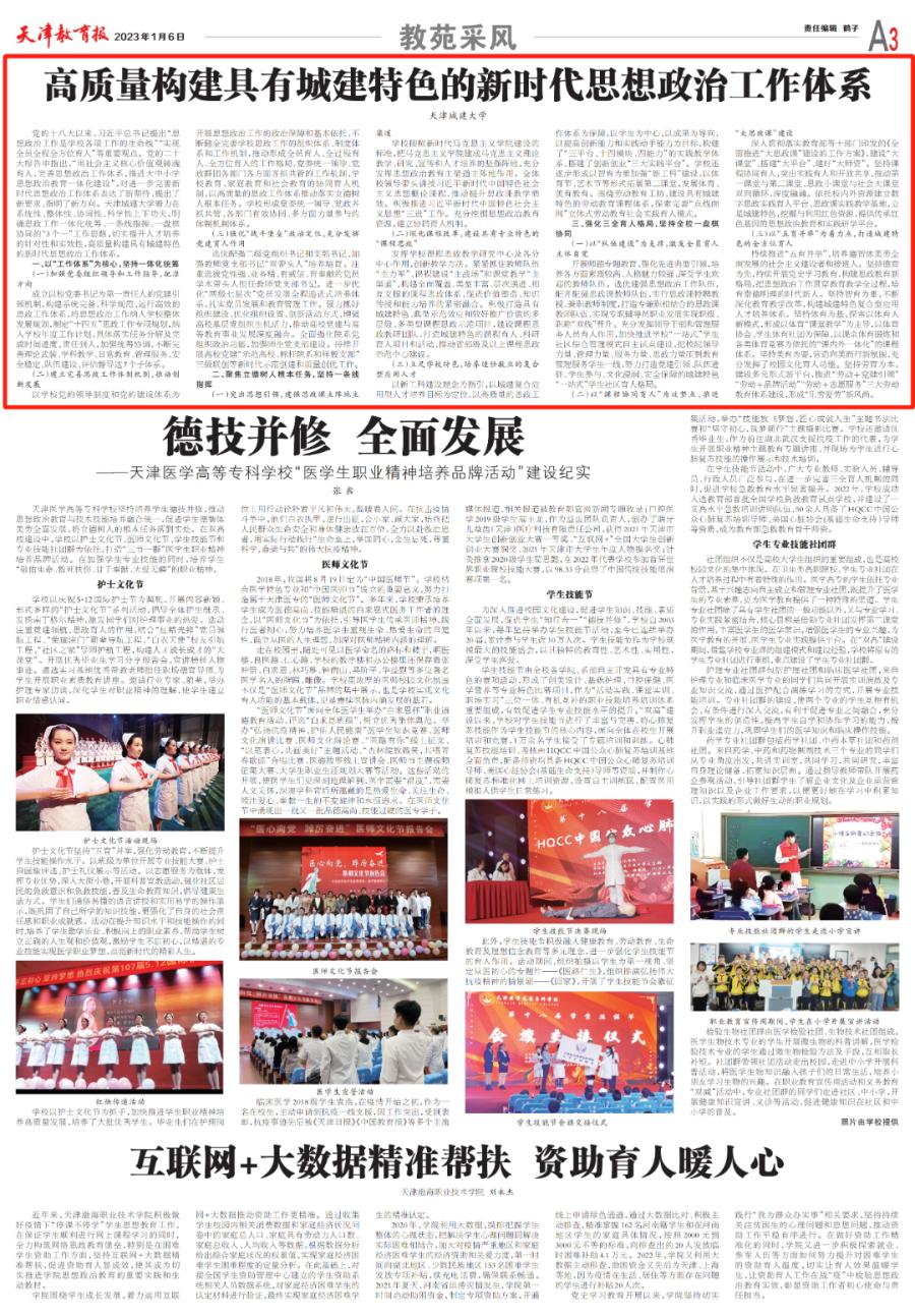 1月6日,《天津教育報》以“高質量構建具有城建特色的新時代思想政治工作體系”為題對我校工作進行報道,現轉載如下。