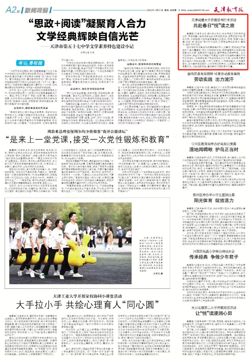 本報訊(記者 彭未風 通訊員 王同歡)在世界讀書日即將來臨之際,天津城建大學組織學生前往天津圖書館、西青區圖書館、青閱書苑、三聯韜奮書店和國圖津灣文創空間,開展“探索書香天津,共赴‘悅’讀之旅”讀書打卡活動,引導學生養成多讀書、善讀書、讀好書的習慣。